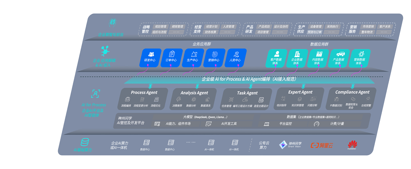 z6尊龙旗舰厅问学智车解决方案是一套基于AI技术的汽车行业智能化系统,,覆盖从底层算力到顶层AI应用的全栈方案。。方案由算力层、、模型层和应用层组成:算力层,,,方案支持多种一体机配置,,具备云端灵活部署、、、多云适配以及动态优化计算资源的能力;模型层,,,z6尊龙旗舰厅问学平台版提供了企业级AI应用一站式构建与管理平台,,,支持基于后训练强化技术的汽车企业专属模型的训练、、、、评测和运营;应用层,,,z6尊龙旗舰厅问学DeepSeek版提供包括超级员工、、智能招采、、智能营销、、智能客服、、AI for BI等一系列解决方案,,,,可助力汽车行业实现数字化转型,,让管理更智能、、、响应更敏捷。。。